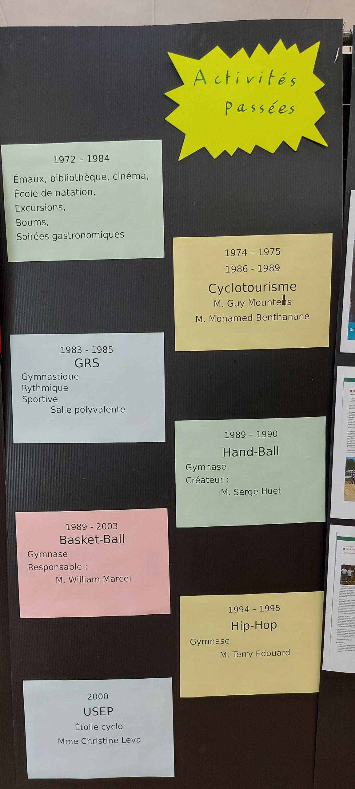 À ses débuts, nous parlions d’activités culturelles et sportives. L’évolution des besoins, les attentes des adhérents et les moyens matériels ont modifié nos actions. Les activités sont devenues des sections sportives, fédérées ou non.